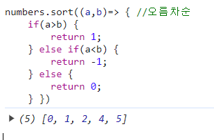 numbers.sort((a,b)=> { //오름차순