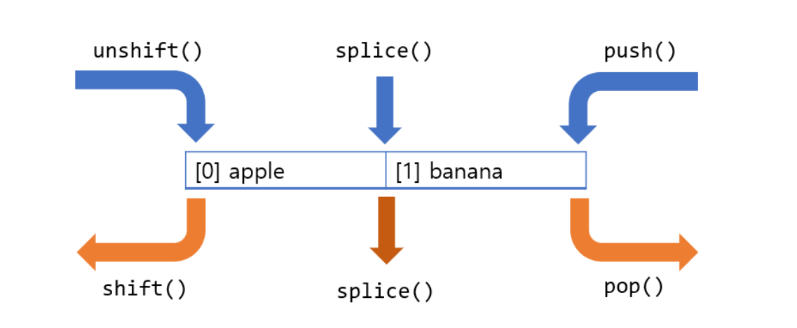 배열.splice() 함수 : 이 함수로는 배열로 부터 특정 범위를 삭제하거나 새로운 값을 추가 또는 기존 값을 대체할 수 있습니다.