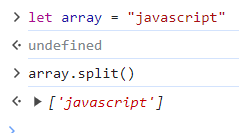 split()은 문자를 지정한 기준으로 나눈 뒤 배열으로 반환해준다. 인수를 넣어주면 인수를 띄어쓰기의 기준으로 삼기 때문에 문자를 넣어주면 원래 배열에서 그 문자가 사라지고, 공백과 나머지 문자의 배열을 반환한다. 만약 존재하지 않는 문자를 넣는다면 문자를 그냥 배열로 바꾸어서 반환한다.