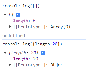 배열은 사실 length 라는 속성을 가진 객체이고, 객체에 length속성을 넣어주게 되면 마치 배열처럼 인식되는 것이다. 하지만 역시나 length 속성을 추가한 object 가 배열과 같다는 이야기는 아니다. Array 가 프로토타입이 아니기 때문이다.
