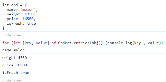 of && Object.entries()를 이용해 key와 value값 출력시키기 (보통 of는 배열을 순회할 때 많이 사용된다)