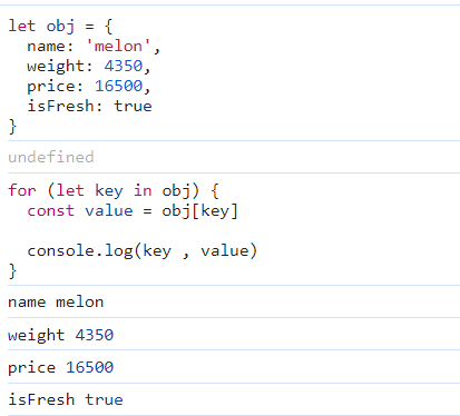 in을 이용해 key와 value값 출력시키기