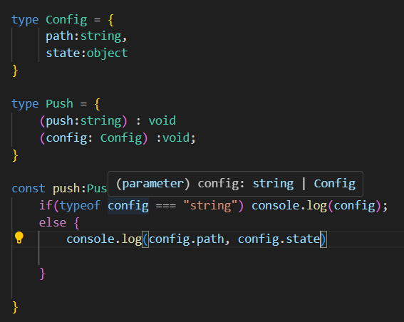 만약 내가 string이나 config타입을 가지고 있다면 타입스크립틑 내부에서 그 타입을 체크하도록 해준다.
